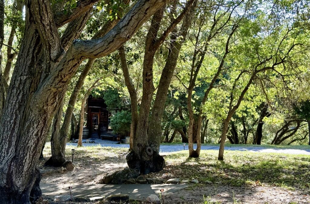 • Porch with oak tree canopy